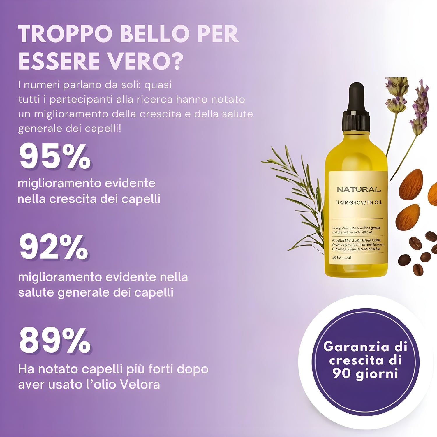 Velora è l’olio rivoluzionario che ha già restituito forza e densità ai capelli di migliaia di donne. Grazie alla sua miscela di oli naturali